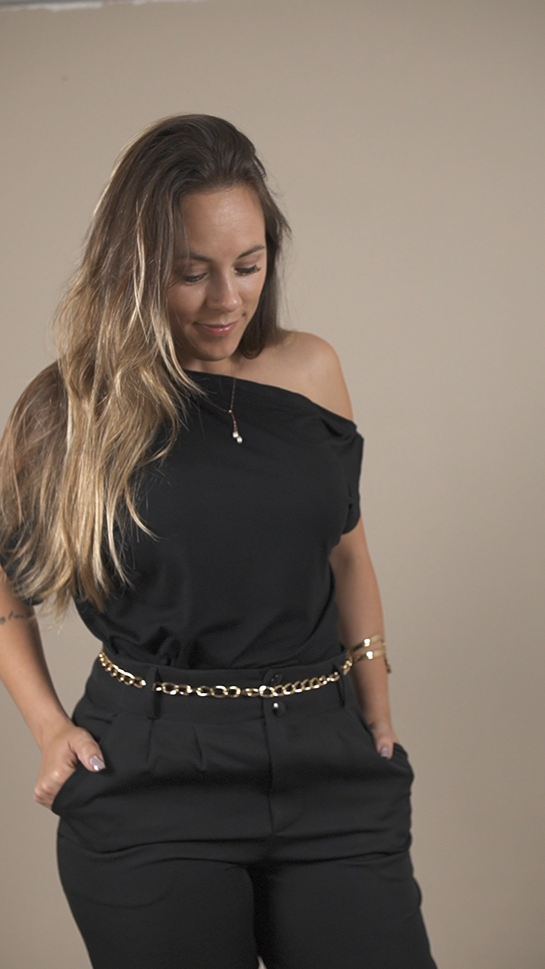 Com modelagem assimétrica e ombros à mostra, ela garante um toque diferenciado e elegante ao seu look, seja para uma ocasião casual ou um evento mais sofisticado.